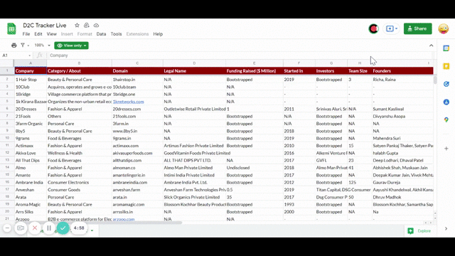 500+ Indian D2C Brands | Get Google Sheet